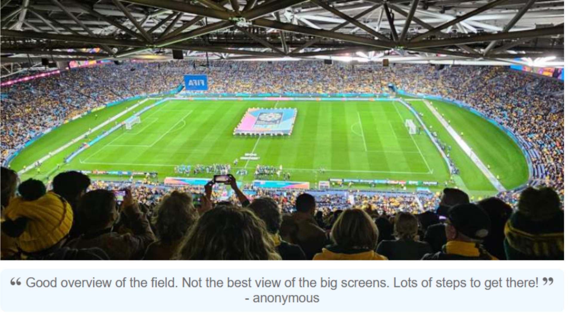 Fans commenting on their seat views at Accor Stadium from 'A View From My Seat' website