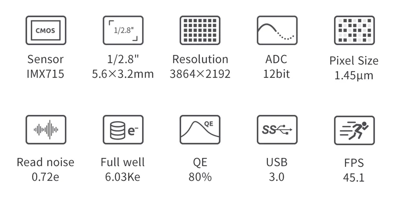 The ASI 715 MC is equipped with a cutting-edge 8.46-megapixel Sony IMX715 sensor, providing outstanding image clarity. Its small 1.45μm pixels offer incredible angular resolution, allowing you to capture detailed planetary features.